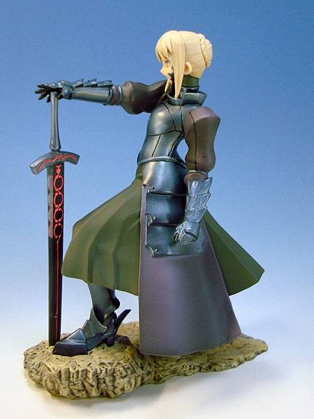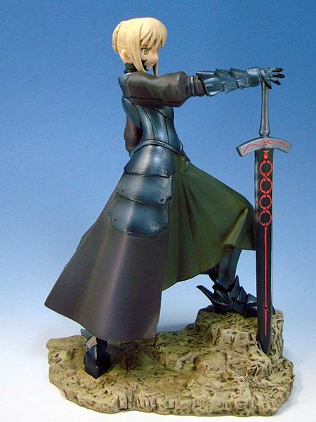 單腳上踏,手立黑聖劍的動作,表現黑化的王者仍有貴為王者的強悍霸氣