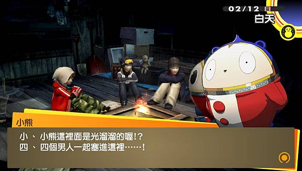 不管是小熊驚恐的發言、陽介吐槽完二發現後遮錯部位、主角提供方法選項的回應,整個就是超有趣