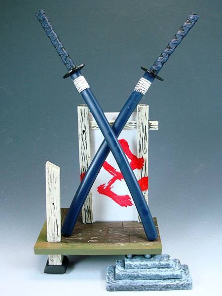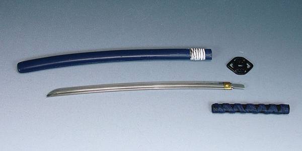 再來塗裝上刀柄、鞘的藍色很深沉漂亮,顎的部分形狀也刻得清晰分明