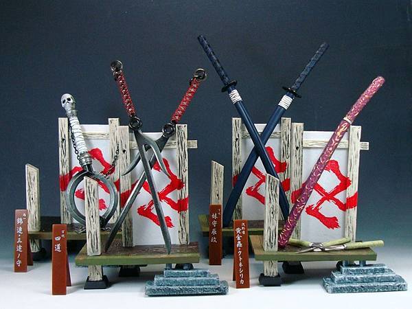 百人斬的萬次經常和人決鬥,在勝利之後他會將對手的武器收藏己用