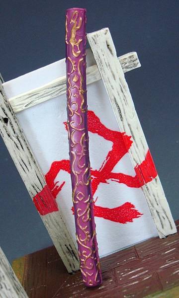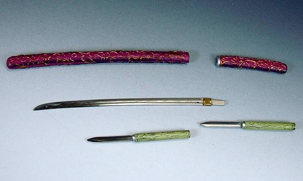 雖然如此,刀鞘、刀柄的花樣刻紋處理得很細,花紋不但是浮雕式的、色彩也很鮮豔