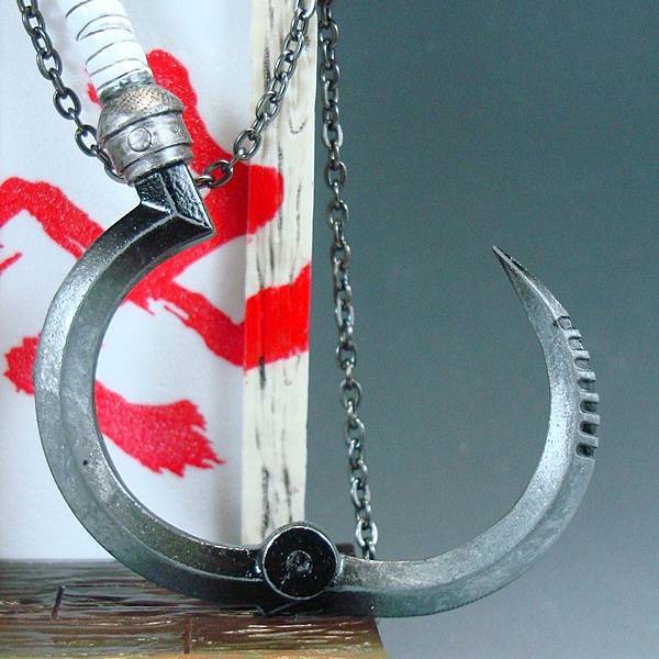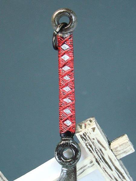 金屬的部位,刀刃、鍊鎖都很有質感與份量,唯獨握柄的布條塗裝比較死板
