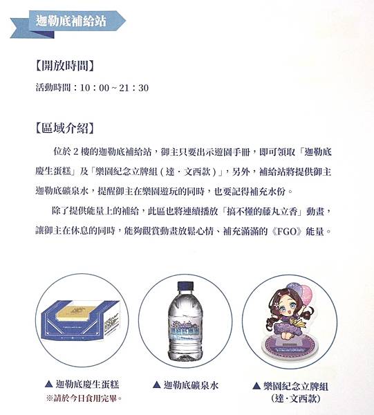 迦勒底補給站:蛋糕、礦泉水、小達文西立牌