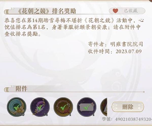 然後我有點羞恥的去信問常年霸榜的佬:能不能讓我拿一次,解鎖獎勵華服