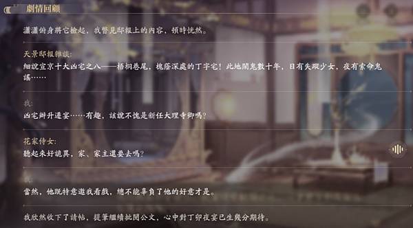 然後在宴會中得知這棟凶宅的兇手尚未就捕,而且來源也有蹊蹺