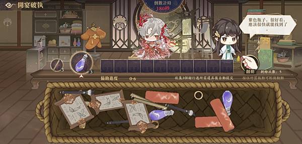 收集小謝需要的素材三個一消,存放格子滿就失敗