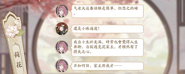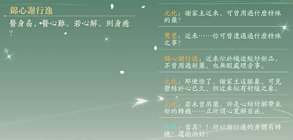 邂逅部分是謝老闆隨口告訴花家主鮫紗製作的流程,顯示信任關係