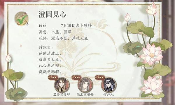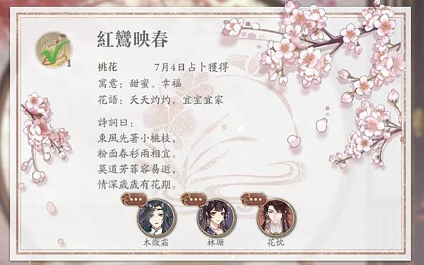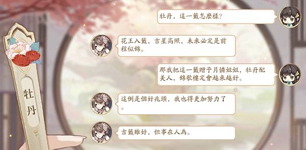 最大特點是每日抽花籤,有解籤小劇情,還會送令