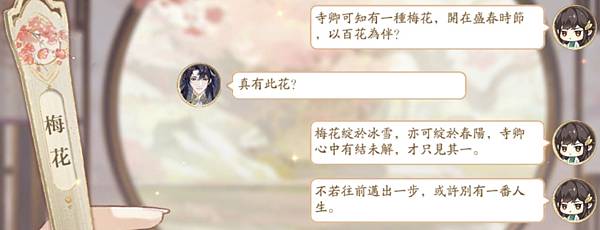 等到進去時,庭園的梅花讓小謝想起故人,就差一步就可以見到面了!(緊張)