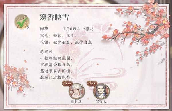 梅花也是夜逸兩人回憶中的花,不過沒想到回應人有宣行之